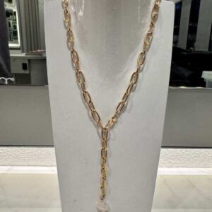 • Gold Link Pearl Pendant Necklace